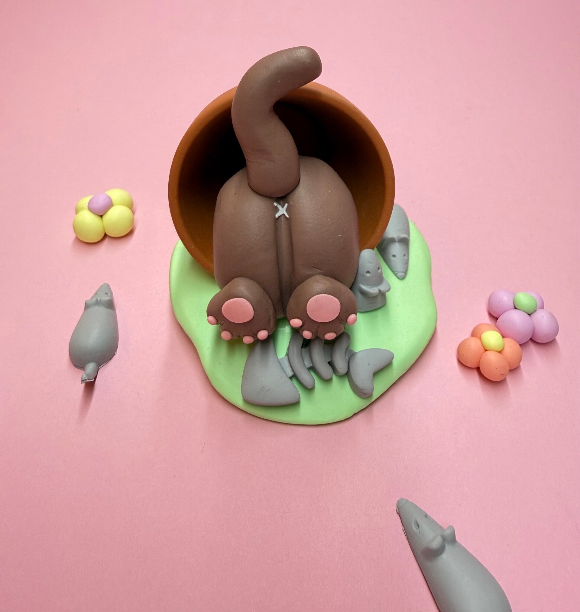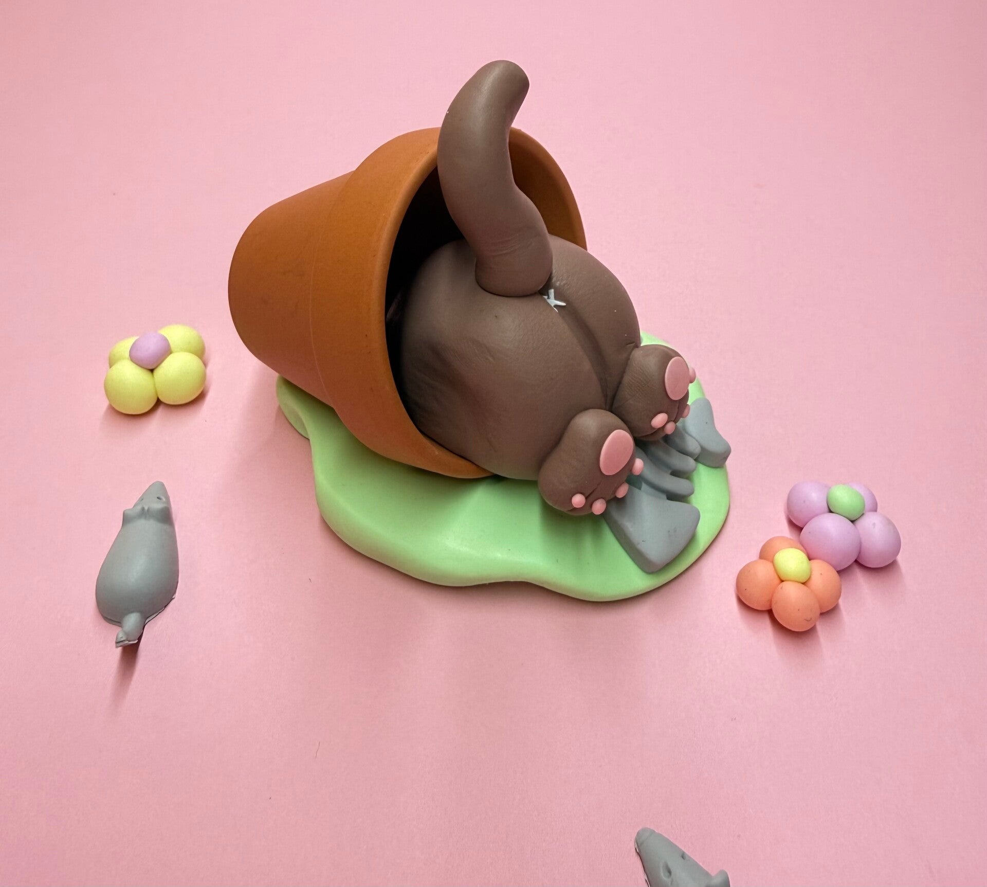 Je gaat zelf van Polymeerklei een superleuke creatie maken; een heerlijk eigenwijs dier met het koppie in een pot en de pootjes omhoog! 🪴